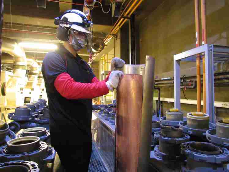 william威廉中文官网将废弃物转化成有效的工业或民生原物料,,,,图为废铜液淬炼后再制成纯度极高的铜管