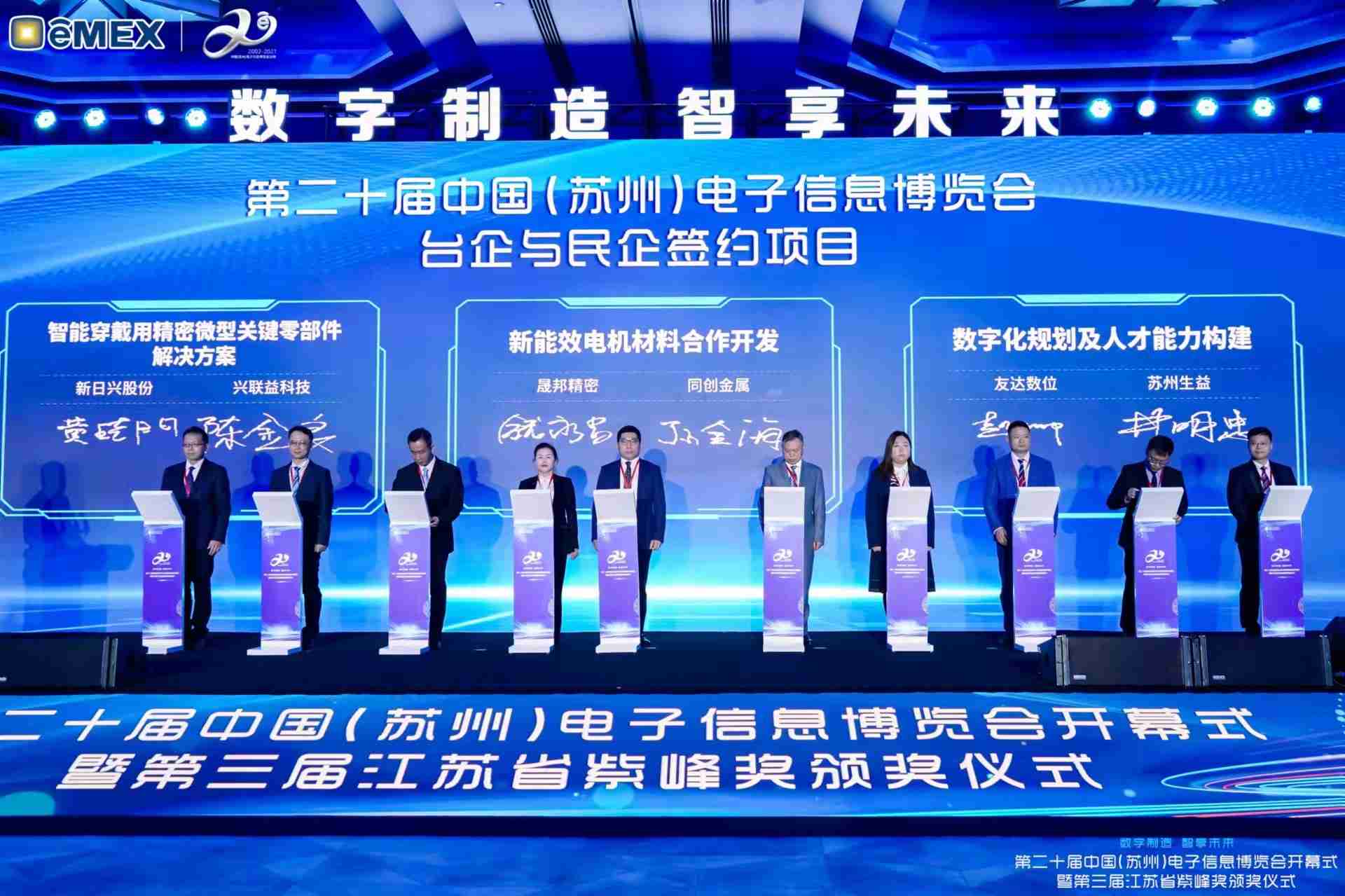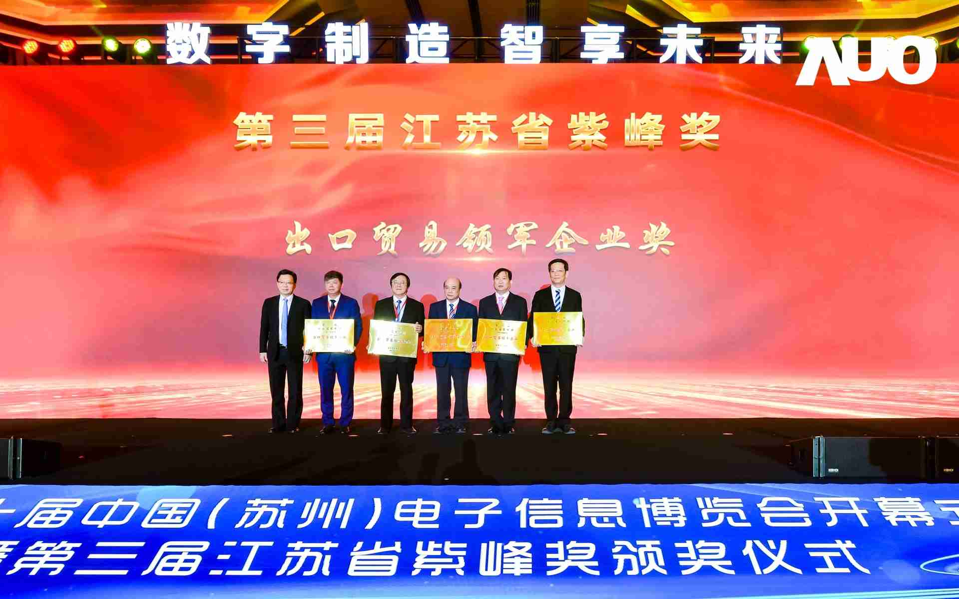 电博会开幕式当天也是第三届江苏省紫峰奖颁奖仪式,,省台办、、、工信厅、、商务厅、、苏州市相关领导均出席并颁奖。。该奖项为表彰对江苏高质量发展做出积极贡献的在苏企业,,,由江苏省政府专门设立。。。。william威廉中文官网光电 (苏州) 总经理郭振明代表上台领奖,,,这也是william威廉中文官网苏州连续三次蝉联紫峰奖 出口贸易领军企业奖。。。。william威廉中文官网数位总经理赵丽娜女士,,,也参与本次开幕式,,上台为本地化赋能签署战略合作协议,,,将优质服务资源集合、、下沉到更多细分行业,,,为更多地区的制造企业提供数字化转型服务。。