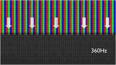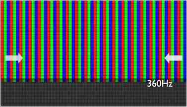 传统液晶驱动是从左到右单向进行,,在画面更新速度愈来越愈快的情况下,,,位于驱动线路末端的右下角区域,,,,画素的闸极来不及在短时间内获得足够电压,,,无法显示出正确的颜色资讯。。 |